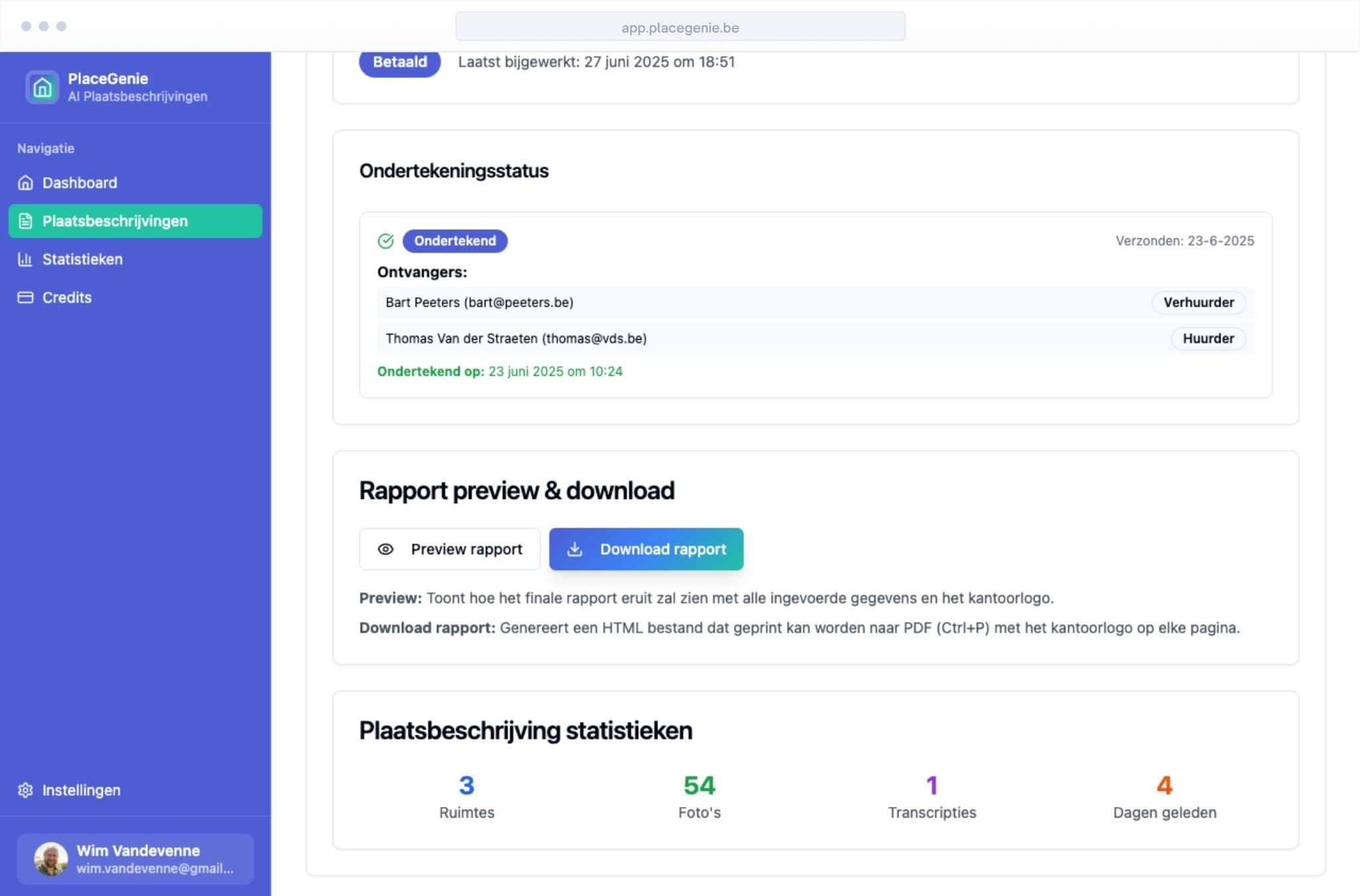 Als syndicus doe ik tientallen plaatsbeschrijvingen per maand. PlaceGenie heeft mijn workflow compleet omgegooid - van 2 uur naar 15 minuten per rapport. De AI herkent echt alles.