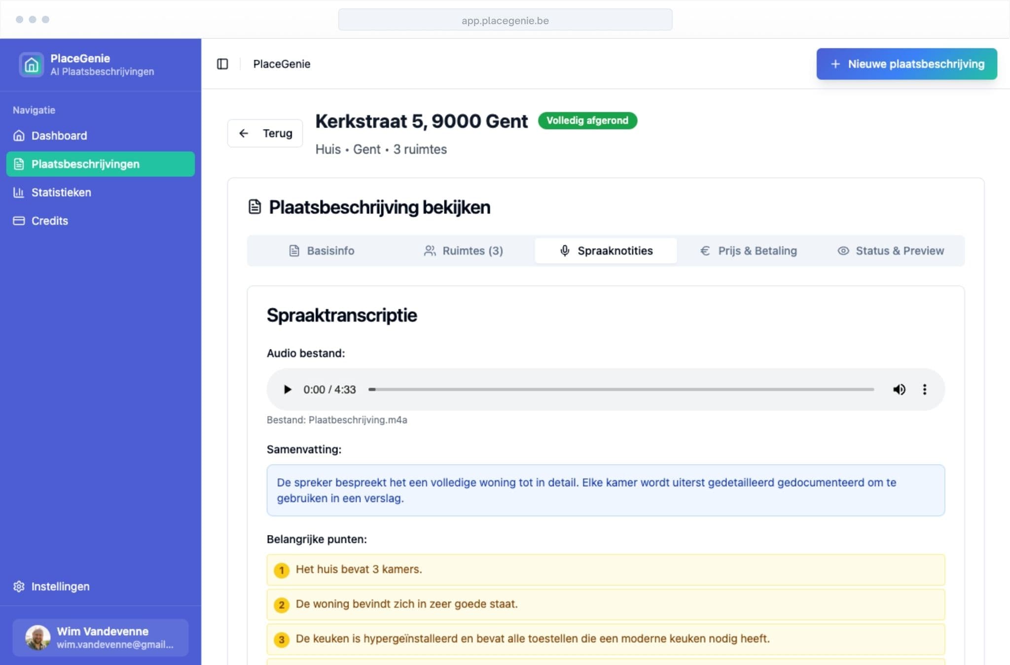 Plaatsbeschrijvingen hoeven geen last te zijn. PlaceGenie combineert AI en gebruiksgemak in één tool – speciaal voor vastgoedprofessionals.
